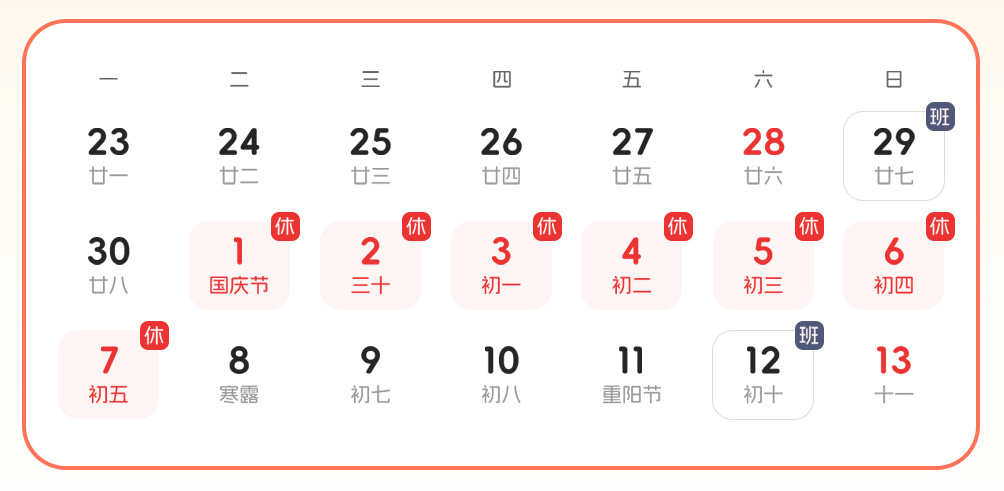 親愛的博靈新老客戶: 您好!隨著金秋十月的臨近,我們即將迎來祖國的又一個生日——國慶節。為了慶祝這一舉國同慶的時刻,按照國家規定我司特此通知2024年國慶節放假安排如下: 放假時間 10月1日-10月7日(共7天) 正式上班 10月8日(星期二)正式上班